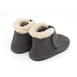 BADANA VELCRO BORREGUITO ANTE GRIS PISO AL TONO PLANTILLA Y FORRO PIEL
