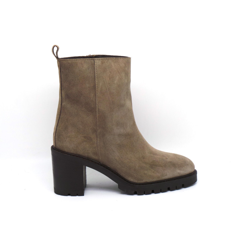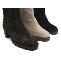 BOTIN TACON TACOS MEDIA CAÑA CREMALLERA ANTE TAUPE PLANTA GEL PIEL