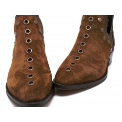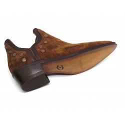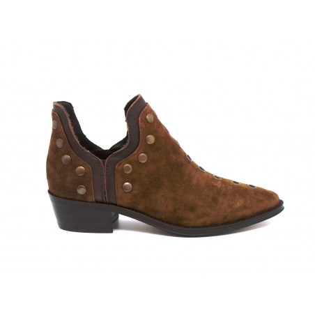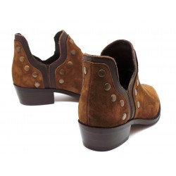 BOTIN TOBILLERO TACHUELAS ORO VIEJO ANTE MARRON CLARO BORDE PIEL MARRON