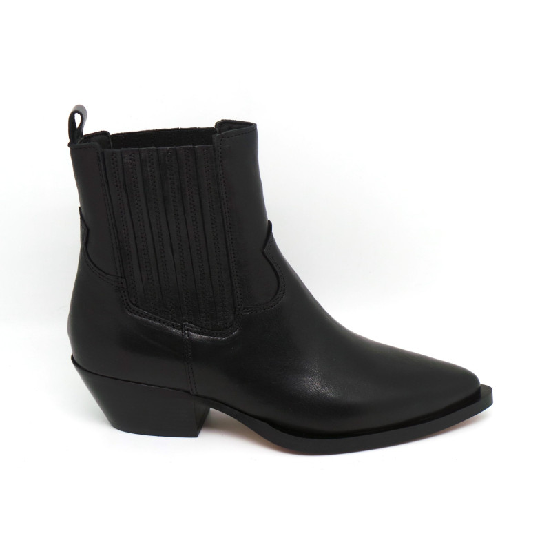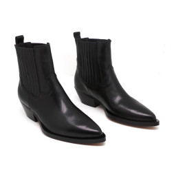 BOTIN COWBOY ELASTICO/PIEL NEGRO TACON BAJO MADERA PLANTA GEL