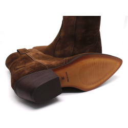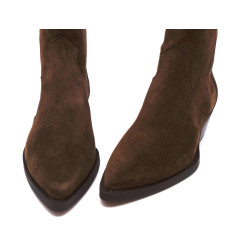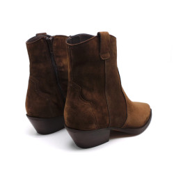 BOTIN COWBOY CREMALLERA ANTE MARRON TACON BAJO MADERA PLANTA GEL