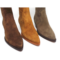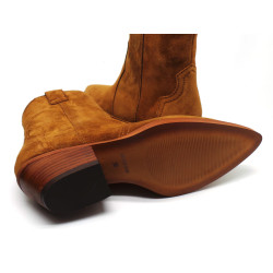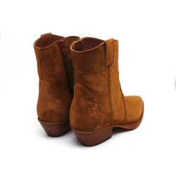 BOTIN COWBOY CREMALLERA ANTE CUERO TACON BAJO MADERA PLANTA GEL