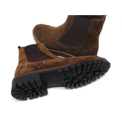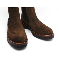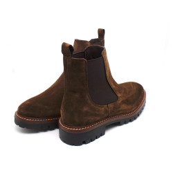 BOTIN ELASTICO TACOS ANTE MARRON PLANTA GEL PIEL