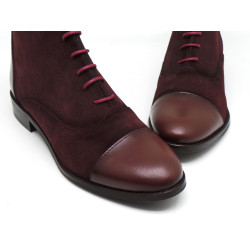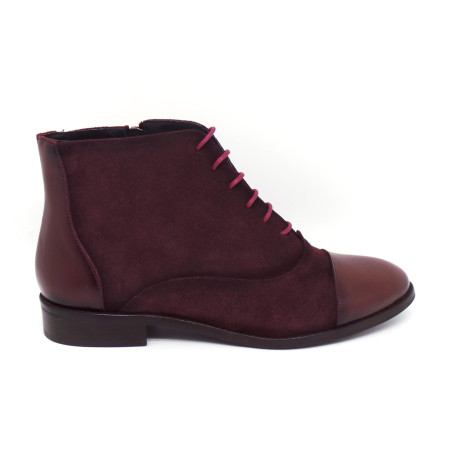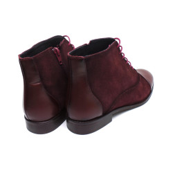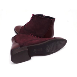 BOTIN VESTIR CORDONES/CREMALLERA PUNTERA Y LENGUETA PIEL VINO/ ANTE VINO PISO MARRON PLANTA GEL PIEL