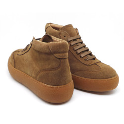 BOTA SNEAKERS CORDON ANTE CUERO PLATAFORMA BAJA PISO CASCO CREPPÉ CAUCHO NATURAL FORRADAS PLANTA GEL