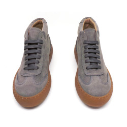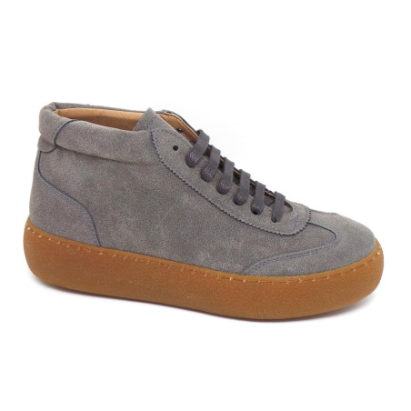 BOTA SNEAKERS CORDON ANTE GRIS PLATAFORMA BAJA PISO CASCO CREPPÉ CAUCHO NATURAL FORRADAS PLANTA GEL