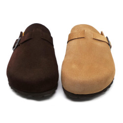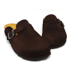 ZUECOS BIO HEBILLA PLATA VIEJA ANTE MARRON PLANTA GEL ANTE NATURAL