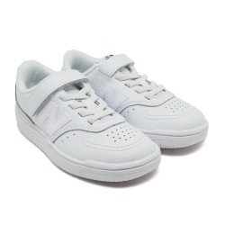NEW BALANCE B80 PIEL BLANCA LOGO AL TONO CORDON ELASTICO/VELCRO PISO BLANCO